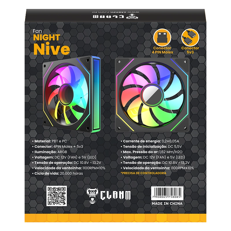 O cooler fan Clanm Night Nive combina estilo e desempenho. Com iluminação RGB vibrante e estrutura robusta, proporciona excelente fluxo de ar para manter seu setup refrigerado mesmo nas partidas mais intensas. Ideal para quem busca estética e eficiência em um só produto.