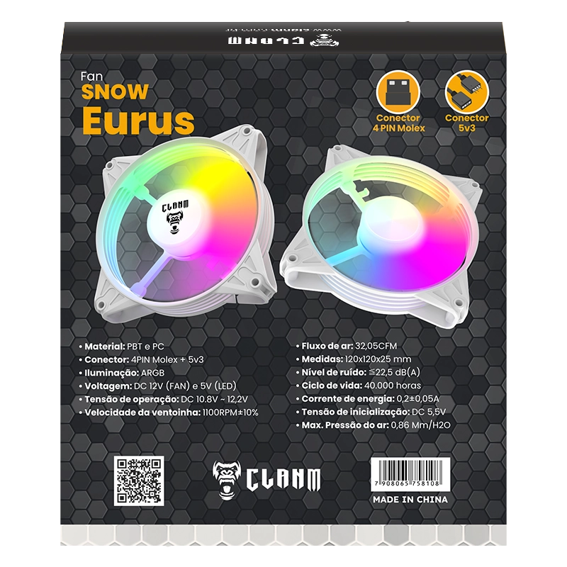 O cooler fan Clanm Snow Eurus une estética clean com potência. Seu design branco com iluminação RGB é ideal para setups minimalistas e elegantes. Garante resfriamento eficiente com baixo ruído, mantendo seu PC sempre em alta performance, mesmo nas jogatinas mais intensas.