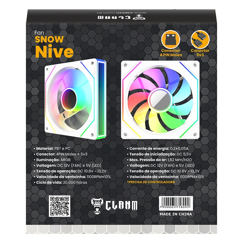 O cooler fan Clanm Snow Nive combina estilo e desempenho. Com iluminação RGB vibrante e estrutura robusta, proporciona excelente fluxo de ar para manter seu setup refrigerado mesmo nas partidas mais intensas. Ideal para quem busca estética e eficiência em um só produto.