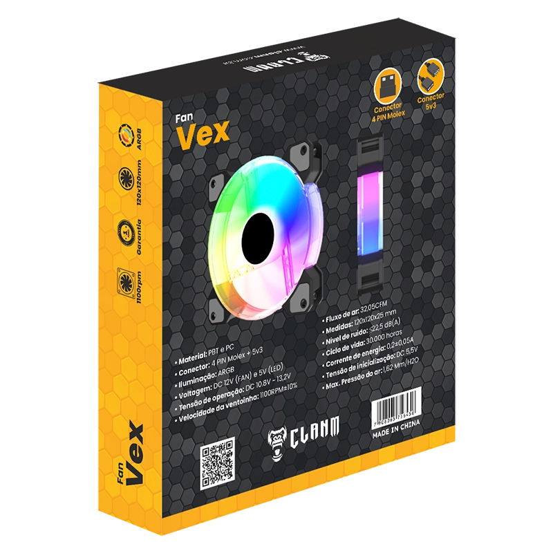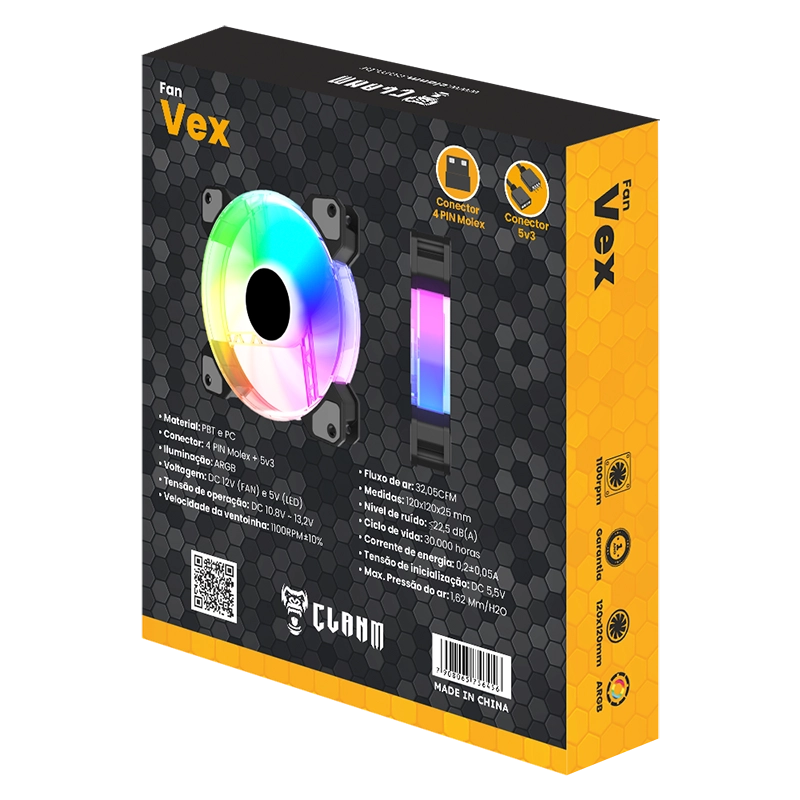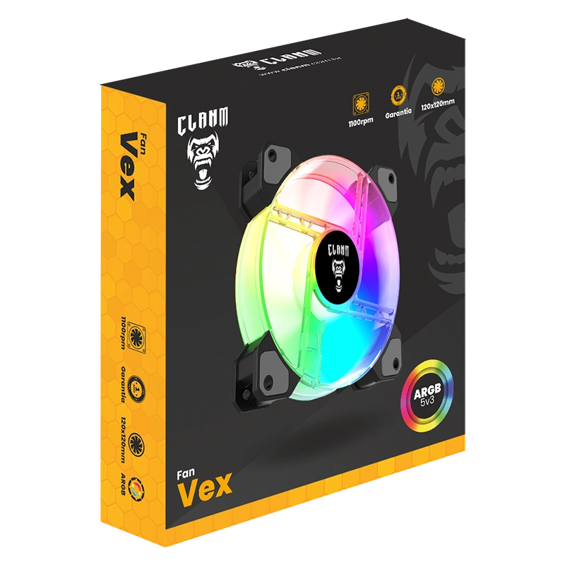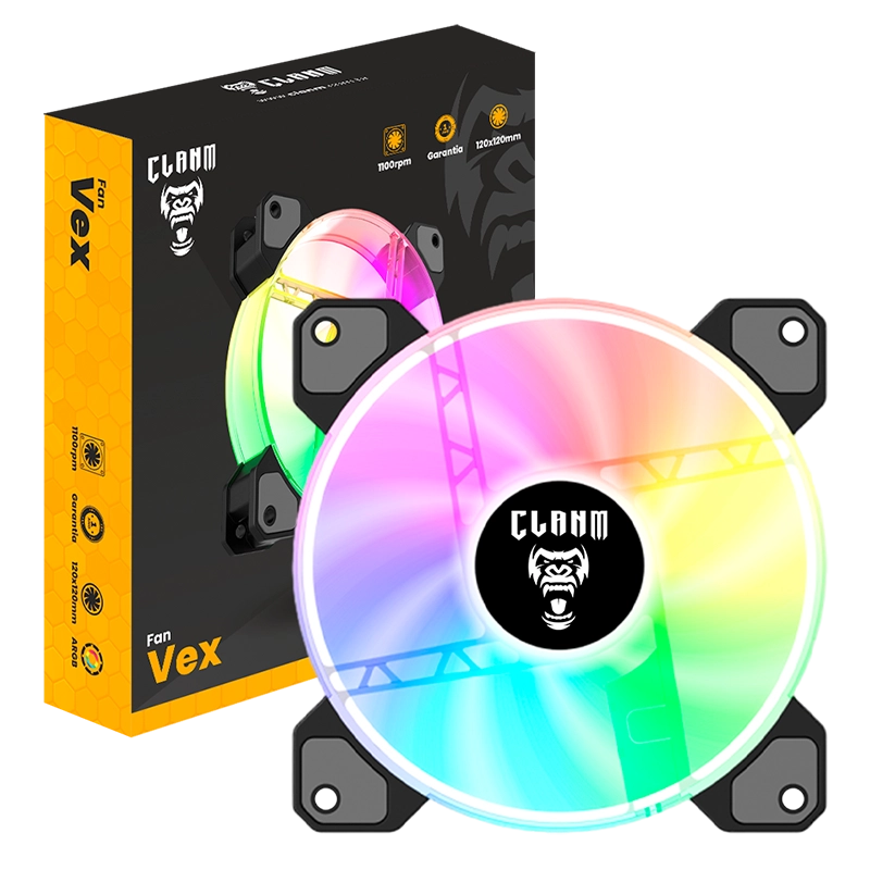 O Fan Clanm Vex é a escolha ideal para gamers que exigem performance e estilo. Com cooler RGB de alto fluxo de ar, controladora dedicada e baixo ruído, oferece resfriamento poderoso e visual imponente para seu setup. Compatível com a maioria dos gabinetes, garante eficiência térmica com muito mais personalidade.