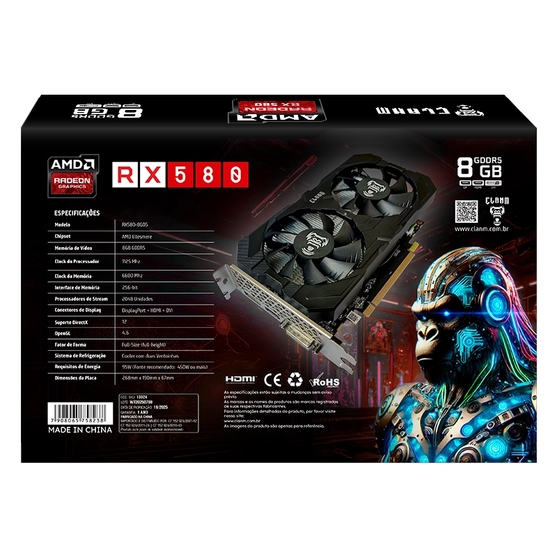 A Clanm RX580 8GB é a placa ideal para quem busca jogar com alta qualidade em Full HD. Com 256 bits, memória GDDR5 e excelente desempenho gráfico, ela entrega fluidez em jogos competitivos. Perfeita para quem quer potência com ótimo custo-benefício no setup gamer.