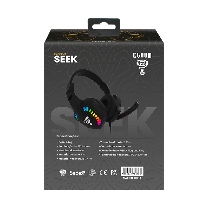 Descubra cada detalhe da partida com o headset gamer Clanm Seek. Design robusto, iluminação RGB e som imersivo com graves intensos. Ideal para longas sessões de jogo, oferece conforto prolongado, microfone ajustável e construção resistente para acompanhar sua gameplay com estilo e precisão.
