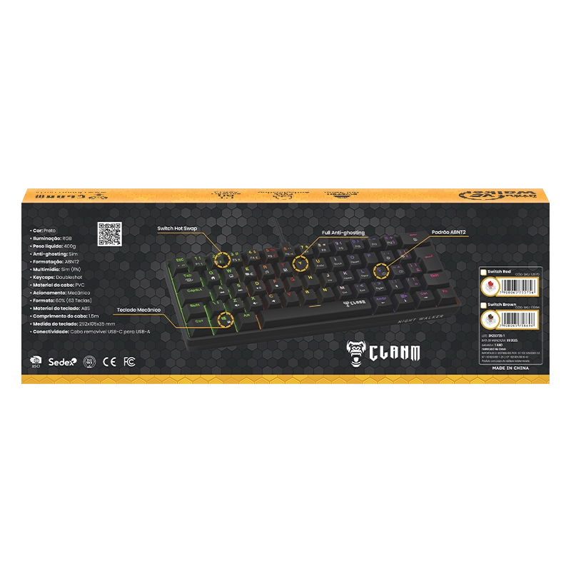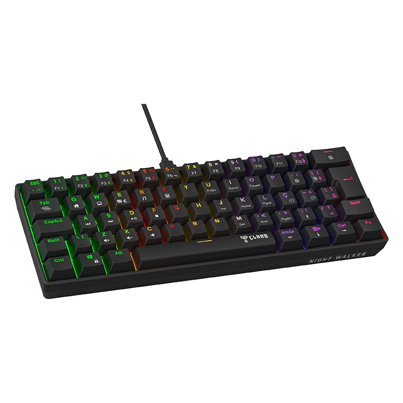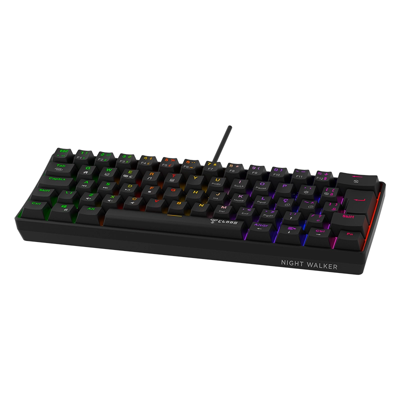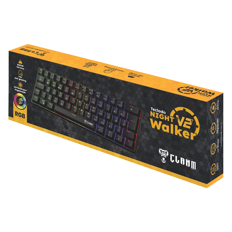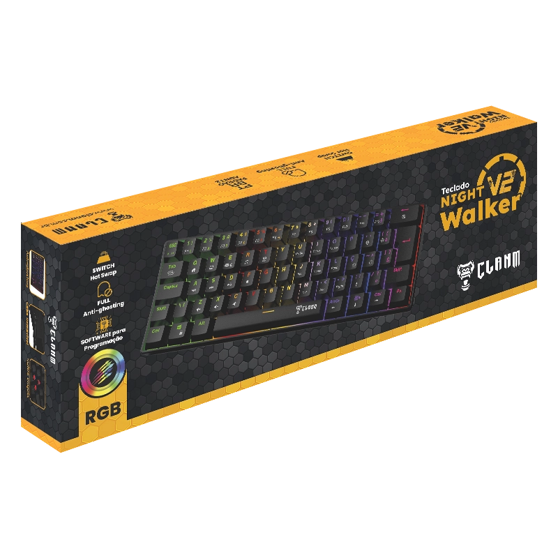 O teclado gamer Night Walker V2 da Clanm é um teclado mecânico compacto feito para quem quer eficiência e mobilidade. Com switches red, base hot swap. iluminação RGB. software próprio para personalização e design minimalista, proporciona uma digitação fluida e precisa, sem abrir mão do estilo gamer.