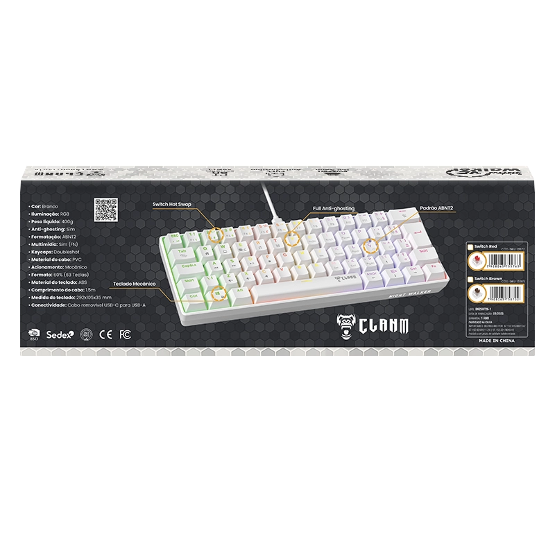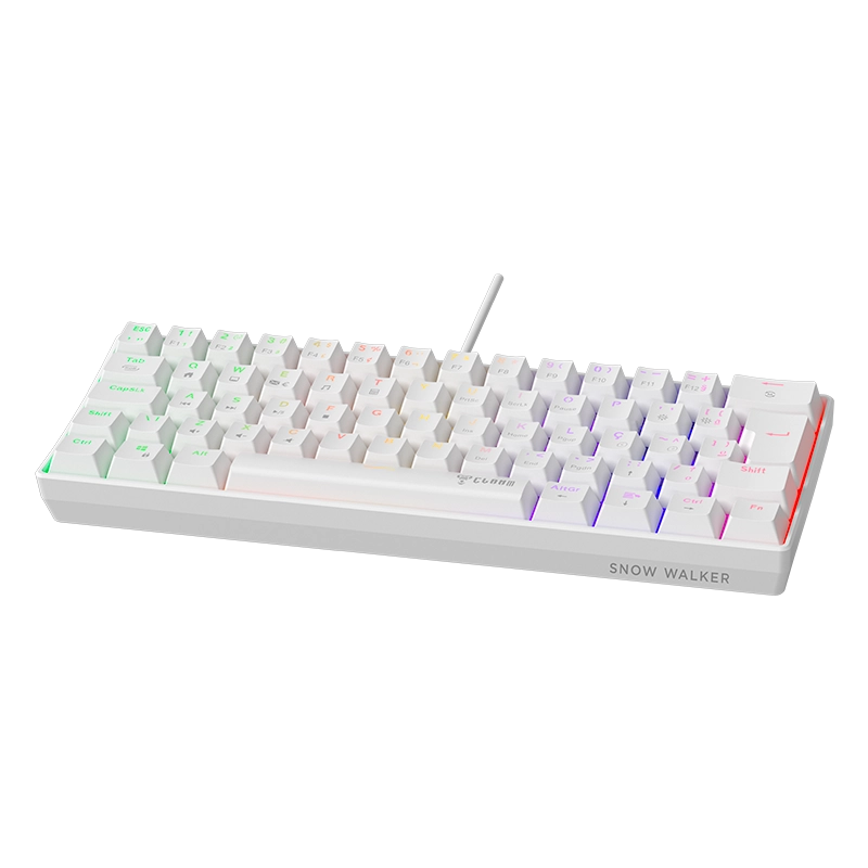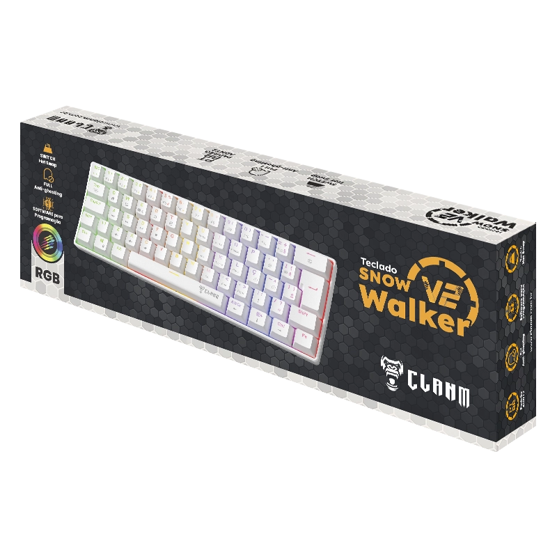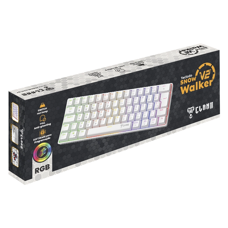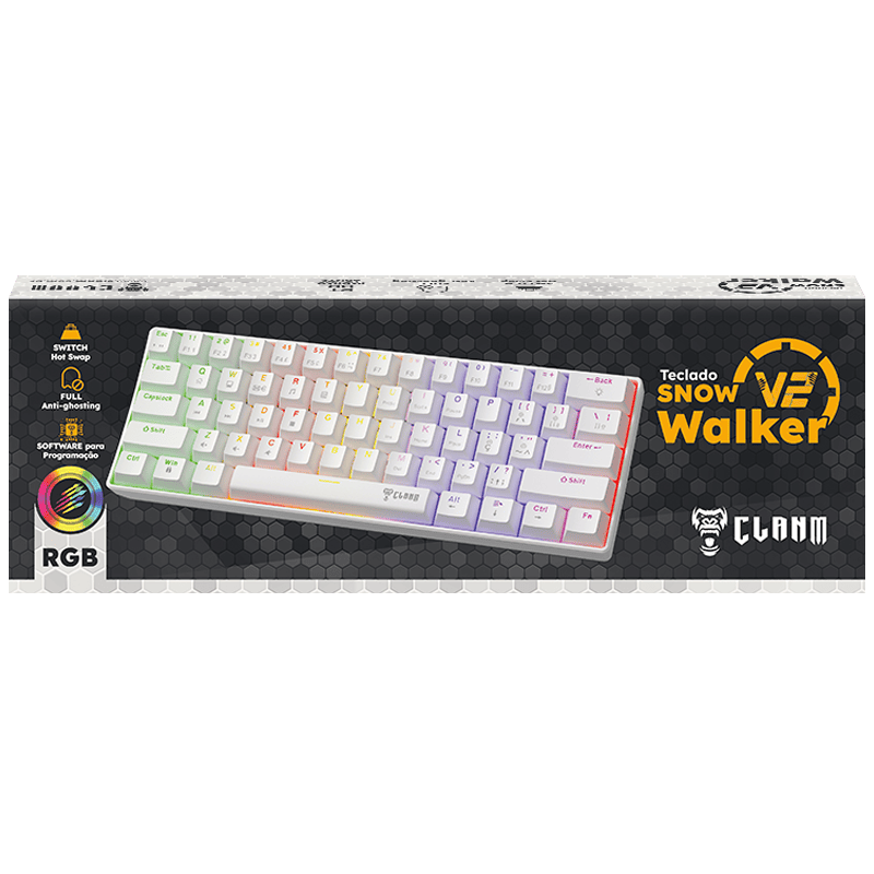 O teclado gamer Snow Walker V2 da Clanm é um teclado mecânico compacto feito para quem quer eficiência e mobilidade. Com switches red, base hot swap. iluminação RGB. software próprio para personalização e design minimalista, proporciona uma digitação fluida e precisa, sem abrir mão do estilo gamer.